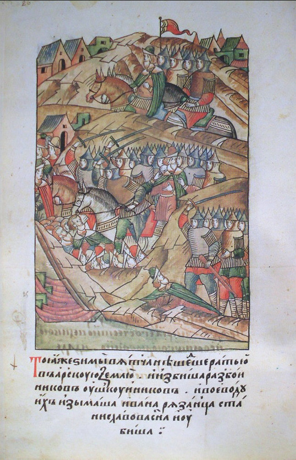 В ту же зиму вятчане, пойдя ратью в Арскую землю[1], перебили разбойников ушкуйников[2] и их атамана поймали, Ивана Рязанца, Станиславова сына, и убили его.