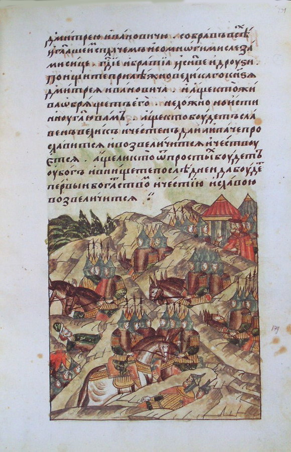 Дмитрия Ивановича, собрав всех, сказал им с плачем и со слезами многими так: "Господне, братья, сыновья, друзья! Ищите прилежно великого князя Дмитрия Ивановича, и когда кто найдет его живым, то — вправду скажу, без лжи — если будет этот человек славен, высок, почитаем, то еще больше прославится, возвысится и почтется, а если он будет из простых, беден и в последней нищете, он станет первым и богатством и почетом и возвеличится славой".