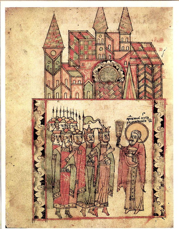 "Князь же великий Дмитрий Иванович скоро встав от трапезы. Преподобный же Сергий окропи его святою водою и все христолюбивое войско его".